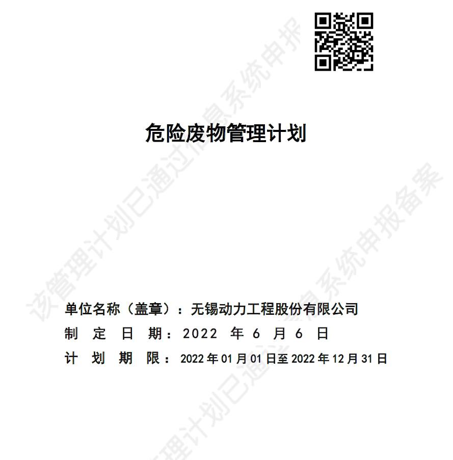 無(wú)錫動(dòng)力工程股份有限公司污染防治信息公示